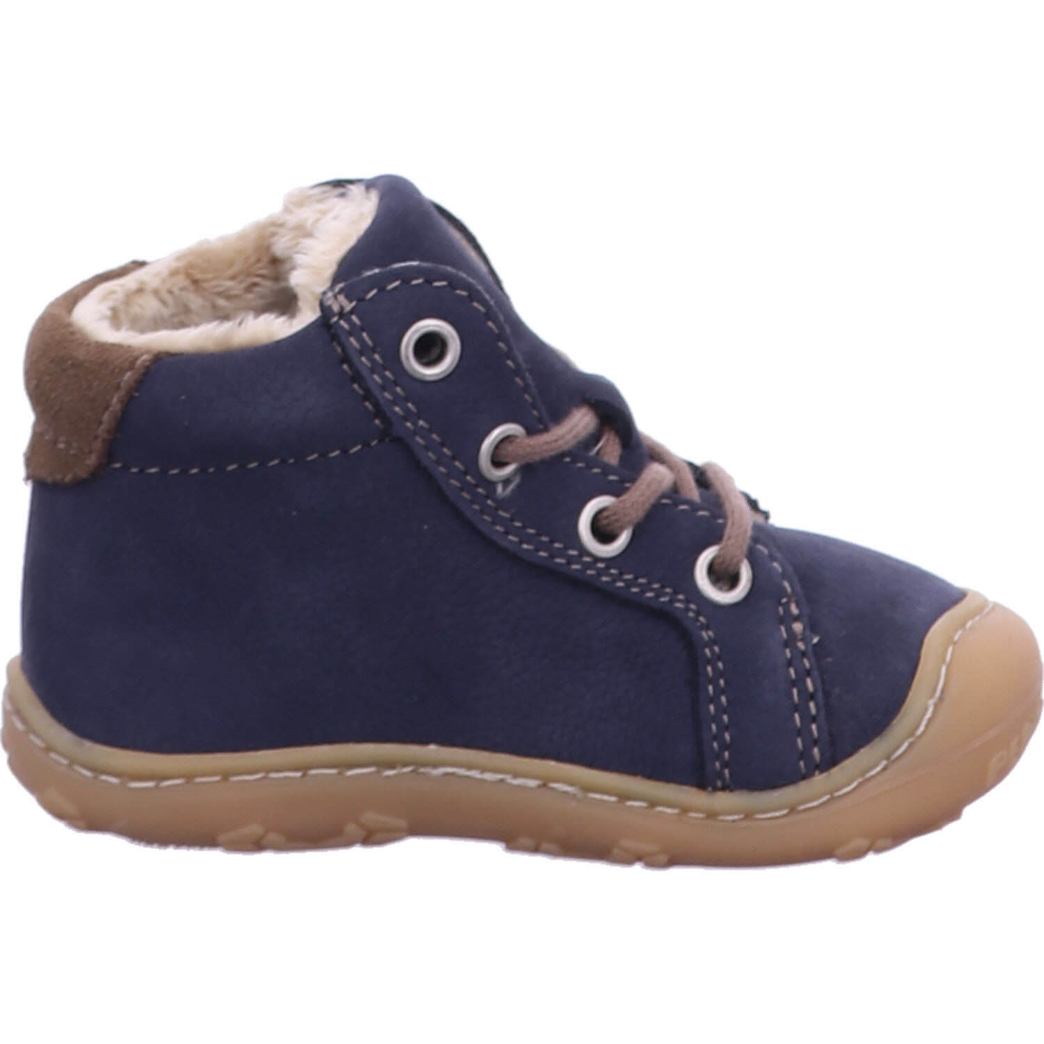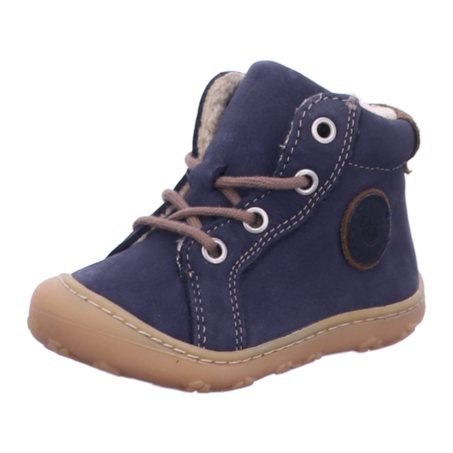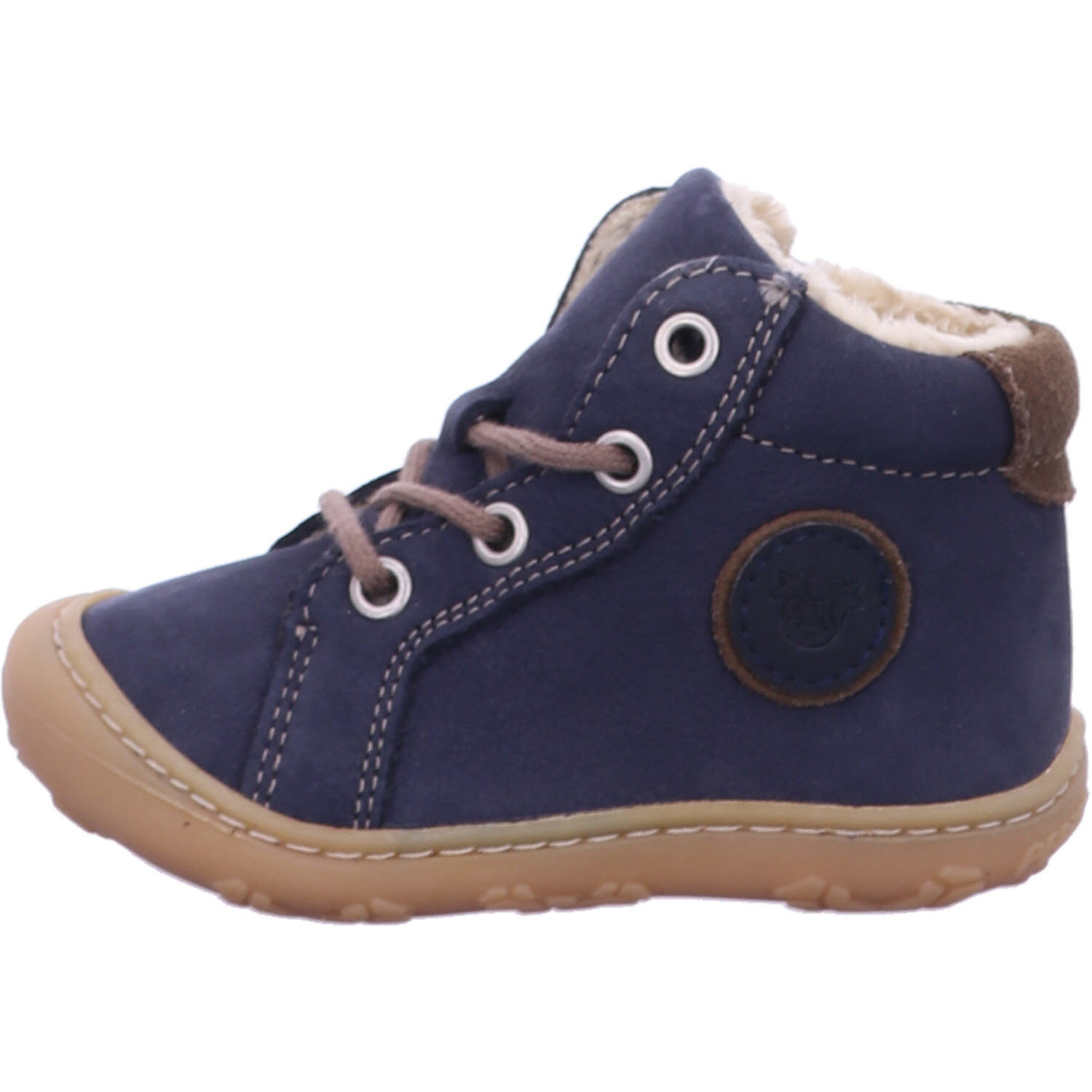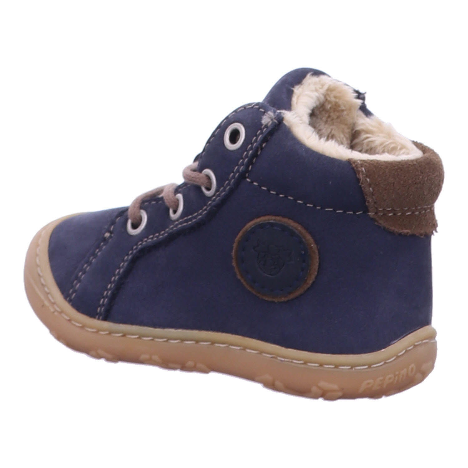 Moderne Boots GEORGIE von PEPINO für warme Füße im WinterDie bequemen Kinderschuhe GEORGIE begeistern Jungen und Mädchen beim Laufenlernen mit einer extrem weichen Sohle aus Naturkautschuk. Zudem sorgen die Schnürsenkel, die durch vier Ösen verlaufen, für einen sicheren Halt bei jedem Schritt. Die Unisex Boots sind mit einer warmen Einlegesohle Vildona gestaltet, die sich zum Lüften mühelos aus den Schuhen herausnehmen lässt. Das Obermaterial ist aus echtem Leder Oslo gestaltet, das nach dem Spaziergang an der kalten Luft rasch wieder von Scheeresten und anderen Verschmutzungen befreit ist. Das sportive Modell hat eine runde PEPINO Applikation auf der Seite.